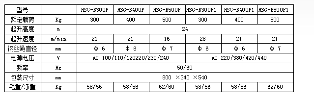 HSG-B400F推式微型電動(dòng)葫蘆參數表: