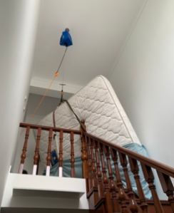 隨后經(jīng)過(guò)老板的點(diǎn)撥,提示他可以來(lái)單位拿走小小的吊運機和懸掛式電動(dòng)葫蘆,再經(jīng)得客戶(hù)的同意下,將吊運機和電動(dòng)葫蘆搬運到客戶(hù)的樓體上方,使用柔軟的吊裝帶將床墊捆綁結實(shí),接通電源,再按動(dòng)電動(dòng)葫蘆的下降按鈕,使吊鉤下降到吊裝帶打結處,按動(dòng)上升按鈕,笨重的床墊就會(huì )被輕松的吊運到高處。