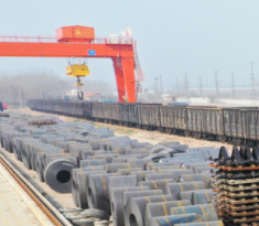 礦山中運輸的鋼材量大,重量重達幾萬(wàn)甚至十幾萬(wàn)噸,為了快速完成鋼材的運輸任務(wù),某礦山公司承包下當地的火車(chē)站貨場(chǎng),并搭建一座大型的龍門(mén)吊,在龍門(mén)吊上安裝一臺大噸位的鋼絲繩電動(dòng)葫蘆,將鋼材放置到電動(dòng)葫蘆的吊鉤上,再啟動(dòng)電動(dòng)葫蘆的上升按鈕,使葫蘆上升到一定高度之后,使其向鐵路貨車(chē)貨箱的方向行走,滑動(dòng)到指定位置后,再將鋼材下放到貨車(chē)車(chē)廂中。